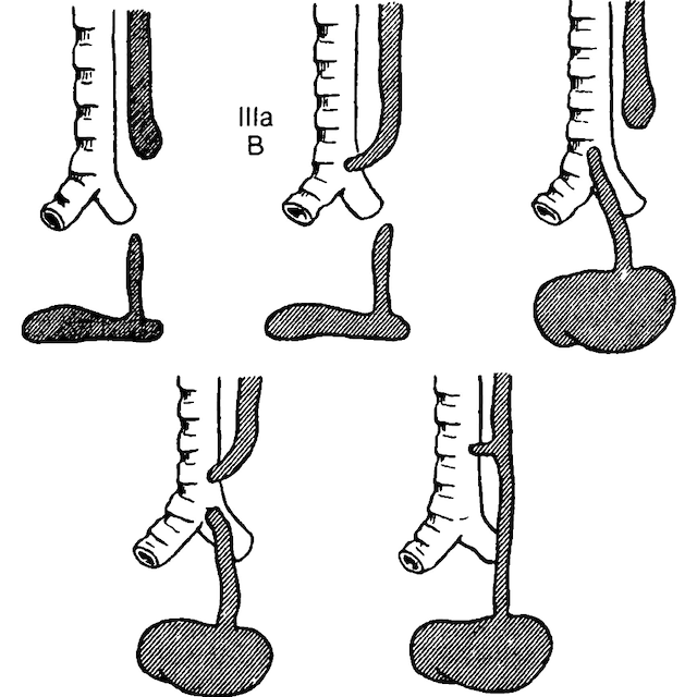 Атрезия пищевода — это врожденная аномалия развития, при которой у ребенка отсутствует часть пищевода. При этом шейный (верхний) и брюшной (нижний) отрезки пищевода никак не связаны между собой. Отрезки пищевода могут заканчиваться слепо, но примерно в 90% случаев верхняя или нижняя его часть соединяется с трахеей, формируя трахеопищеводный свищ1.