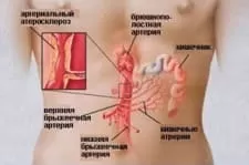 В сущности, брюшная жаба – это резко возникающие болевые ощущения в животе, которые препятствуют нормальному кровоснабжению, вызывают спазмы и дискинезию. С медицинской точки зрения причина возникновения – поражение и изменение висцеральных артерий, вследствие атеросклероза. Пример внутреннего поражения органов представлен на рисунке.