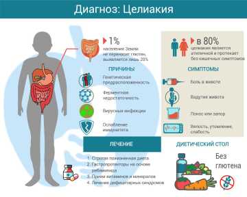Кроме того, у детей с целиакией часто возникает непереносимость белков коровьего молока, поэтому примерно в ⅔ случаях приходится исключать из питания молоко и молочные продукты.