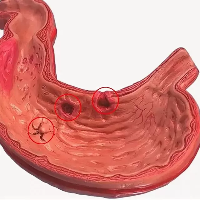 Эрозии отличаются от язвы глубиной поражения. При эрозии дефект не достигает глубоких слоев слизистой оболочки и заживает без образования рубца. Язва всегда заживает с рубцеванием. Но и в том, и в другом случае может быть поврежден крупный сосуд и тогда начнётся кровотечение. По статистике, 7-14% случаев госпитализации с желудочно-кишечными кровотечениями приходится именно на эрозивные гастриты[1].