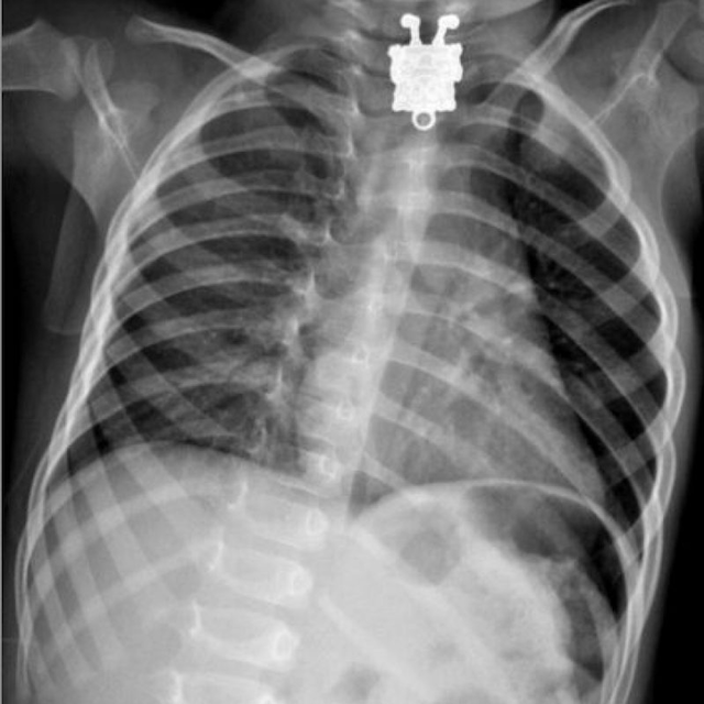 Но поскольку эндоскопия может быть недоступна (нет дежурного эндоскописта в небольшой больнице и т. д.), для диагностики инородного тела может использоваться рентгенограмма области шеи и грудной клетки в двух проекциях. Если инородное тело рентгенонеконтрастно (пластик, гидрогелевый шарик и т. п.), рентгенограмму делают с контрастом. Пациенту предлагают выпить непрозрачную для рентгеновских лучей бариевую взвесь, на фоне которой становится видно инородное тело.