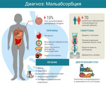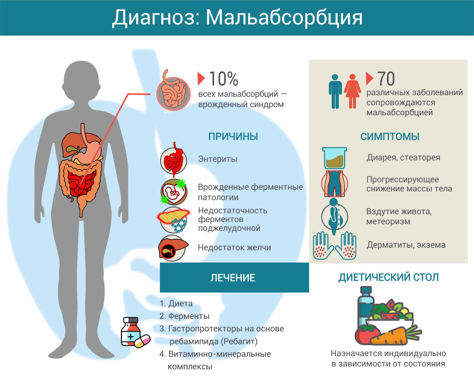 Мальабсорбция возникает из-за врожденной или приобретенной недостаточности ферментов тонкого кишечника, обеспечивающих полостное или пристеночное пищеварение. Вызвать это состояние могут: