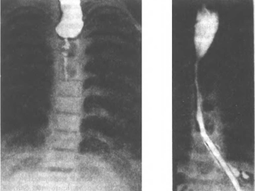 В случае, если эндоскопия невозможна из-за отсутствия оборудования или крайней степени сужения пищевода, для диагностики непроходимости применяют рентгенографию. Пациенту дают выпить смесь, содержащую соли бария, непроницаемые для рентгеновских лучей. После этого делают серию снимков, позволяющих оценить уровень и распространенность сужения пищевода, а также моторику его стенок.