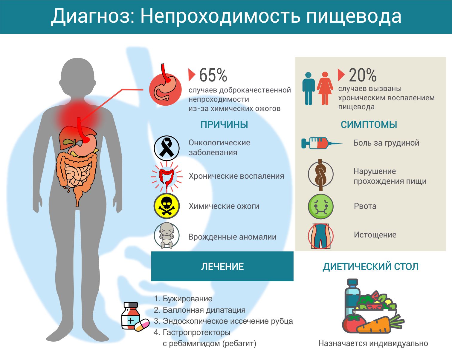 Все возможные причины нарушения проходимости пищевода можно свести к нескольким основным группам.