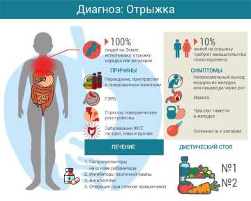 Если не считать физиологических вариантов (переедание, пристрастие к газированным напиткам), одна из самых частых причин отрыжки — гастроэзофагеальная рефлюксная болезнь (ГЭРБ). При этом заболевании повышенное внутрибрюшное давление сочетается со сниженным тонусом кардиального сфинктера, содержимое желудка забрасывается в пищевод, а затем попадает в ротовую полость. Отрыжка при ГЭРБ сопровождается изжогой.