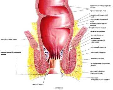 В месте перехода собственно кишки в анальный канал располагаются особые складки – крипты, или анальные колонки. В них открываются анальные железы, которые вырабатывают слизистый секрет. Он защищает стенку кишки от повреждения каловыми массами, а также замедляет рост и размножение бактерий, которых, по понятным причинам, в прямой кишке очень много.