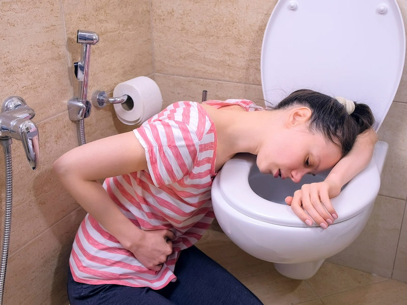 Почти одновременно с рвотой начинается обильная диарея. Стул пенистый, жидкий, зловонный, золотисто-желтого цвета. Частота дефекации зависит от тяжести болезни. Кроме этого, пациент жалуется на спазмообразные боли в животе, вздутие, урчание.