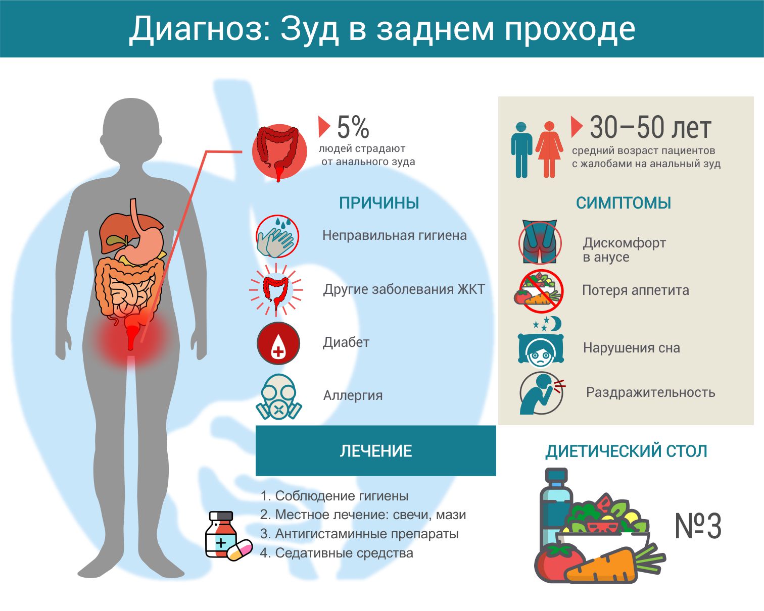 Лечение анального зуда зависит, прежде всего, от вызвавшей его причины. Обычно оно включает целый комплекс мероприятий: гигиенических, медикаментозных, физиотерапевтических.